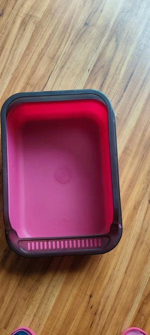Der erhöhte, halboffene Rand fängt streu beim Herausspringen ab. Keine verschmutzten Flure mehr, weniger Putzen und ein ordentlicher Eingangsbereich nach jedem Katzenbesuch.